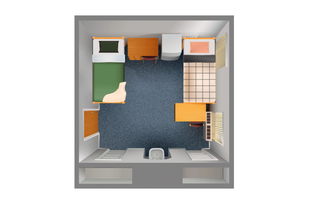 - Standard single room dimensions: approximately 138” x 97” (sizes vary for small, standard, and large single rooms)