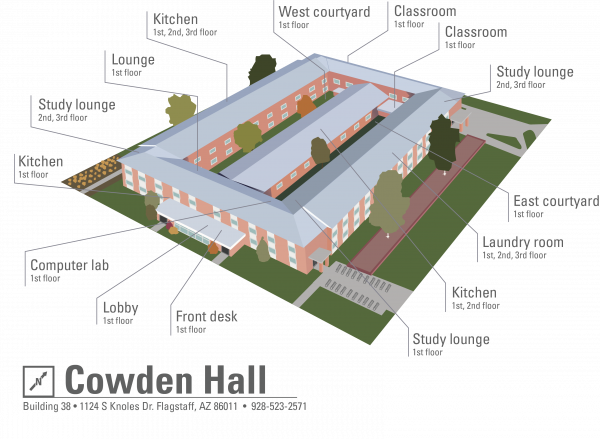 Rooms are designed to be comfortable and functional, and shared spaces throughout the hall help you find your rhythm, academically and socially. With two sunny courtyards, the Mad Cow Lounge, and a location that's also a short walking distance to off-campus essentials like Bookmans, Sprouts, and Target, Cowden Hall makes it easy to feel connected from day one.