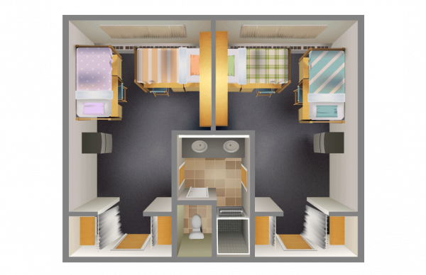 - Standard suites house two residents per room.