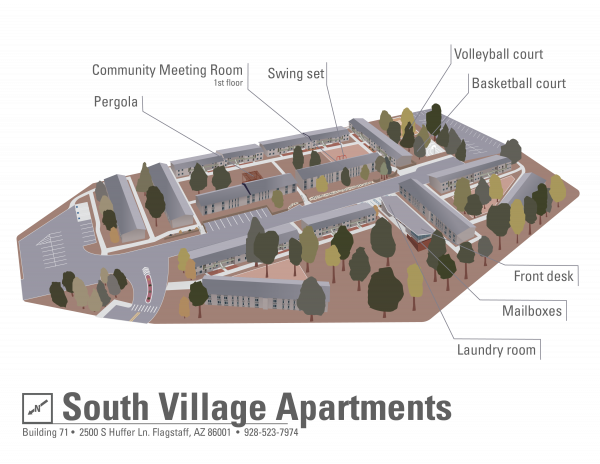 South Village Apartments offers spacious private bedrooms, modern amenities, and a vibrant community for students, all in a tranquil setting. Nestled among ponderosa pines, it provides the perfect balance of independence and connection.